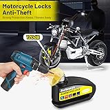 Motorcycle Lock Rechargeable, 120dB Alarm Disc Brake Locks Anti-Theft Security Wheel Disc Lock Waterproof with 5ft Reminder Cable and Carry Pouch for Motorbike Bike Scooter