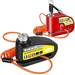 Protect Your Motorcycle: Mathtoxyz Motorcycle lock keep your motorcycle safe with built-in sensors detecting shocks and movements, and a 120dB alarm system that scares off potential loss. Our motorcycle lock is waterproof and can withstand different weather conditions, It's perfect for those who park their motorcycle outside or at an apartment. Necessary motorcycle accessories Added security and peace of mind. Rechargeable: Mathtoxyz Alarm disc brake lock is rechargeable and does not require frequent battery replacement. The universal Type-C charging port is compatible with mobile phone chargers, power banks, and more for quick charging, making it easy for you to maintain it for a long time. Easy to use: press the Alarm disc lock button to start the locking operation, and 5 seconds later there will be a "beep" to indicate the alarm is activated correctly. To shut off the alarm you will either have to use the key to unlock it or wait 30 seconds to use the key to unlock the alarm. Our engineers have implanted some special algorithms into the alarm device to solve the error of most other locks Abnormally alarms sounding. Fits Most Motorcycles and Bikes: Mathtoxyz Disc brake lock is suitable for most motorcycles and bikes with disc brakes, where the rotor is less than 7mm(1/4") thick with holes. Whether you have a motorcycle, moped, scooter, mountain bike, or e-bike, our lock will keep it safe. Package Contents: 1 x Alarm Disk Lock, 2 x Keys, 1 x Hex Key, 1 x 1.5m Reminder Cable, 1 x Motorcycle Lock Bag.