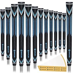 - SAPLIZE High-performance Rubber Golf Grips 13 Pack, High Shock Absorption, Non-slip, 13 Grips with with 15 Tapes, Mid Sizes, CC10 Series, Blue