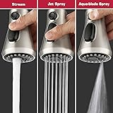 Pull Down Kitchen Faucet Spray Head Replacement - 3 Functions Faucet Sprayer Head with 11 Adapters Compatible with Delta, Moen, Kohler, Hansgrohe, Grohe, Pfister, Brushed Nickel