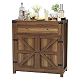 JUMMICO Coffee Bar Cabinet Farmhouse Kitchen Sideboard Buffet Cabinet with Drawer and Adjustable Shelf Barn Door Storage for Kitchen, Dining Room, Bathroom, Entryway (Brown)