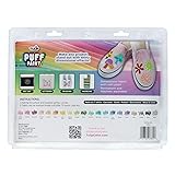 Includes 20 (0.75 fl. oz.) Puff Paints Dries soft and flexible— won’t crack, crumble, or peel Easy-squeeze bottles with precision tip for smooth application Nontoxic, permanent, and machine washable Perfect for family or group activities, parties, arts & crafts, and other creative projects!