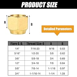 - Features: These brass fittings are in assorted sizes, offering versatility to fit various gas line connections, and the availability of multiple sizes ensures compatibility with different pipe fittings and valves, making it a convenient choice for DIY enthusiasts. The quality material of each brass line cap ensures longevity and durability, making it resistant to wear and tear, and the low magnetic permeability also ensures safe and reliable usage. Specifications: Material: brass Color: as the picture shown Size: approx. 1/4", 5/16", 3/8", 1/2", 5/8", 3/4" Package includes: 6 x Brass flare caps Notes: Manual measurement, please allow slight errors on size. The color may exist a slight difference due to different screen displays. Please check the size carefully before ordering.