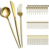- Evanda Gold Silverware Set 60 Piece Service for 20, Titanium Gold Plated Stainless Steel Flatware Set, Knives Forks Spoons Cutlery Set for Wedding, Parties, Birthday, Restauroom, Dishwasher Safe