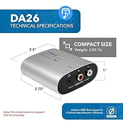 - The DA26 HDMI ARC audio down-mixer can extract the audio signal from ARC-enabled HDTV to 2 channels of analog stereo audio output, for audio receiver/amplifier/ headphone applications. It features PCM 2.0/Dolby 5.1 /DTS 5.1 audio down-mixing. TV remote can control the volume via the CEC function. It Output audio simultaneously from both L/R and 3.5mm ports. OREI DA26 is a compact and easy-to-use solution for sending audio from an ARC-enabled TV to a traditional audio system. Package Includes DA26 HDMI ARC Audio Down-mixer, 1x USB Cable (USB-A to Micro USB), and User Manual.