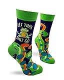 - Our funny saying "Let That Shit Go" women's novelty crew socks with a cute zen yoga frog is a fun and playful addition to your sock collection! These socks are perfect for ladies who love to add a touch of humor to their outfits. Featuring vibrant colors with a pop of bold, bright colorful green on the toe, heel, and top cuff, these cute socks are sure to catch the eye. The whimsical frog design adds a fun and playful touch to these crazy socks, making them a fun conversation piece for any occasion. The words "Let That Shit Go" are printed boldly on the socks. Whether you want to wear them as a lighthearted joke or as a personal mantra, these socks will make a statement and bring a smile to your face. These socks are made with high-quality materials, ensuring comfort and durability with every wear. They are designed to fit most women's feet, making them a popular gift for friends and family. Make a statement and add a touch of humor to your wardrobe with our funny meditation and relaxation novelty socks. Comfortable - Give your feet all-day soft cotton comfort. One size fits most. A Unique Gift for Any Occasion - Surprise that special someone on her birthday, anniversary, Mother's Day, Valentine's Day, Easter, Christmas, or any other holiday or occasion! An unusual thank you for your wife, girlfriend, mother, daughter, sister, niece, friend, BFF, or any important lady in your life! Makes a great one-of-a-kind stocking stuffer present.