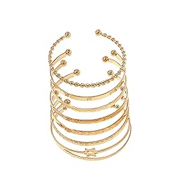 Iindian Bangle Bracelet Set:This stackable bangle bracelet is Indian style.You will get 8pcs bangle bracelet,you can wear them together or separately.You can also share them with your friends and family. Material:The stackable bangle bracelet set is made of high quality alloy,lead and nickel free,comfortable to wear,will not harm your skin,you can wear for a long time. Size:The diameter of the bangle bracelet is about 6.8cm/2.68inch,the size of the bracelet is fixed and cannot be adjusted.Please choose to buy according to the size of your wrist. Bohemian Style:The bohemian bracelets have a wide variety and rich themes.They are a symbol of romance,freedom and mystery,in line with the spirit of modern women,wearing them helps to brighten your appearance,make you look charming draw peoples attention and stands out from the crowd,then win more compliments. Wide Occasion:This bangle bracelets look gorgeous and fashionable,You can wear this multilayer bracelet on different occasions,no matter shopping,working,wedding,party or dating,the bracelet will catch most of eyes,you will get more compliments.Each of the bangles in the set is meant to represent an intention for your day.