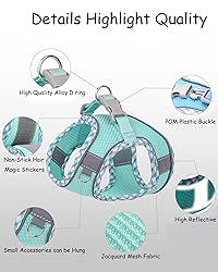 Jacquard mesh lets pet have a wonderful summer:Jacquard fabric is a special knitted fabric, which is flexible, light, breathable, comfortable, three dimensional and soft. It has extremely high durability, tensile resistance, tear resistance and fusion resistance. It has the characteristics of moisture absorption and perspiration, creating dryness, giving pets an extraordinary wearing experience. Velcro that does not stick to pet hair:High viscosity velcro prevents pets from breaking free, and at the same time prevents pet hair from being damaged by velcro.dog harness for medium dogs no pull, dog harness for small dogs, dog harness for dogs no pull. The step in design is easy to put on and off:No pull dog harness is easy-to-wear vest harness on and off your puppy in seconds. harness for small dogs, harness for medium dogs, harness for dogs. Cover reflective strip whole body:This harness can be seen even in low visibility conditions or dark night, making it easier to control dogs and ensuring the safety of walking at night. Attention not directly correspond to your pet's breed or weight:Please measure your pet’s chest girth and neck girth before purchase. sizing does you can refer to our size guide and sizing chart for the best fit. if in between sizes, please order one size up.
