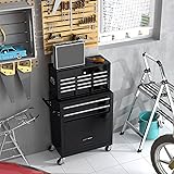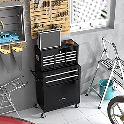 - This tool cart is great for home workshops and some professional environments, could be placed in the garage,workshop, warehouse,etc. With its exquisite appearance, this cabinet could be placed as a furniture. Moreover, it’s not only a tool organizer, but also a wonderful gift as gentlemen present for holiday, birthday, anniversary Features: 🌟1. The mobile workshop trolley impresses with plenty of storage space and an attachable and mobile case attachment for your tools and workshop accessories that you always have to hand. 🌟2. The tool trolley is equipped with a total of 8 drawers and a large storage space with a tool box. The tool box is also lockable and can be used as a removable, attachable and mobile case attachment. 🌟3. With the central locking mechanism, all 8 drawers can be locked quickly and easily. 🌟4. The opening and closing of the drawers of the tool cabinet is very gentle thanks to the ball-bearing drawers. The storage surface provides additional space for storing and arranging tools you often need. 🌟5. The robust and powder-coated steel construction is used for high wear resistance. This assembly trolley has 4 steering wheels, 2 of which with parking brakes, so you can move the trolley freely in the garage, but also stop in one place. Specification: Color: Black Main Material:Cold Rolled Steel, rubber-plastic synthetic wheel Need to be assembled: instructions included Overall Dimension: 24.4"(L) x 13"(W) x 39"(H) Top Tool Chest Dimension: 23.6"(L) x 10"(W) x 13.4"(H) Bottom Tool Chest Dimension: 24.4"(L) x 13"(W) x 25.9"(H) Net Weight : 62 lbs