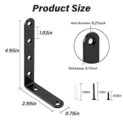 Experience Ultimate Sturdiness: These L-shaped corner brackets are crafted from high-quality steel to provide unbeatable strength and prevent bending or deformation under heavy weights Rust-Proof Finish: Featuring a black-coated finish, these brackets resist rust and corrosion, ensuring they retain their durability for years to come Easy to Reinforce: Perfect for boosting the strength of corner joints, these angle brackets are highly versatile for any woodworking project and safeguard against load collapse, providing peace of mind Effortless Installation: Enjoy hassle-free installation with this set of 4 pieces of 5x3 inch brackets complete with mounting screws and anchors, saving valuable time and money on your woodworking projects Versatile Use: These strong, compact corner braces are suitable for a variety of applications, making them the perfect addition to any shelf or furniture piece, from garden shelves to tables and chairs, ensuring stability Satisfaction Service: Our after-sales service and commitment to quality offer the best service possible, ensuring you are satisfied with your purchase