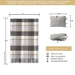 Wool PURE WOOL:Crafted from 100% natural wool, our Temminc plaid throw blanket offers superior softness, breathability, and insulation. Unlike synthetic blankets, this high-quality wool throw regulates body temperature, keeping you cozy in winter and cool in summer. Perfect for snuggling on the couch, bed, or outdoor adventures PERFECT SIZE WITH FRINGE: 83"L (including Tassel 8") x 55"W and weighs around 1.5 lbs, Weighing only 1.5 lbs, this lightweight wool blanket is easy to carry anywhere. It includes a durable storage bag, making it ideal for travel, camping, picnics, or office use. it provides full-body warmth without bulk IDEAL FOR ALL SEASONS: Designed for maximum comfort, our wool throw features a stylish plaid pattern that complements any home decor. The breathable wool fibers prevent overheating, making it perfect for all seasons—whether as a cozy bed throw, sofa blanket, or outdoor essential THOUGHTFUL GIFT IDEA: A wool blanket makes a timeless and thoughtful gift for various occasions such as weddings, housewarmings, graduations, engagements, Mother's Day, Father's Day, birthdays, anniversaries, and more. It's a versatile and cherished present that conveys comfort and warmth EASY CARE: Wool is self-cleaning, eliminating the need for frequent machine washing that can damage the fibers. The high-quality wool used in our blankets is durable, flexible, and temperature-regulating. A simple spot cleaning and a good shake are usually sufficient to keep it fresh. Designed to last, our Woolly Mammoth blankets are trusted by bushcrafters, hunters, campers, backpackers, hikers, survivalists, and preppers