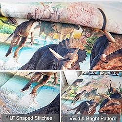 Material: The dinosaur print comforter is made from 100% microfiber which is soft, comfortable, and lightweight for all-season use; our dino bedding is breathable and fluffy like sleeping in a cloud, brings you ultimate softness and comfort everyday Set Include: 3 Pieces Full Comforter Set - 1 x comforter 80 x 90 inches and 2 x pillow cases 20 x 30 inches; the 3d dinosaur print is designed for boys teens and girls who loves love dinosaurs. It is a great room decor for your kids room Soft and Cozy: Dinosaur comforter is highly durable with a high tensile strength for all season use; wrinkle and fade resistant, ultra comfy, breathable and durable Easy Care: Machine wash cold separately on gentle/delicate cycle; tumble dry on low. Do not bleach. Do not dry clean Lightweight: Comforter's weight is ideal for year-round use; our dinosaur comforter can be used directly without duvet cover; also, it serves as a comforter with your preferred cover