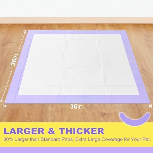 MIZOK Dog Pee Pads 36x36in, Extra Large Pee Pads for Dogs, Keeps Fresh & Clean, Ultra Absorbent Up to 11 Cups, 6 Layers Leak-Proof, Purple Lavender Color (30 Counts)