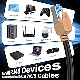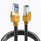 Ultra Internet speed:Powerful Cat 8 ethernet cable support bandwidth up to 2000MHZ and 40Gbps data transmitting speed,faster than Cat7,Cat6,Cat6a,Cat6e,Cat5,Cat5e.So you can connect to LAN/WAN segments and network devices at maximum speed to surf the web, download videos & music, connect to cloud data servers and other smart home and office products that require high speed and high performance networking. Superior Performance & 26AWG:Cat8 lan cable is made of 4 shielded foiled twisted pair(F/FTP) And 26AWG single-strand OFC wire,Each twisted pair is individually shielded with aluminum foil.It provides better protection from crosstalk,noise,and interference that can degrade the signal quality.Comparing with other 32AWG Ethernet cable,26AWG Cat8 is thicker,a lot faster and stable in data transferring,which is perfectly suitable for AI smart products. Widely Used & RJ45 Connectors:Cat 8 Ethernet Cable 25 ft with two shielded RJ45 connectors at both ends,Perfect for networking switch,routers,ADSL,network adapters,hubs,modems,PS3,PS4,PS5,NAS,IP Cam,Mac,Laptop,coupler,x-box 360 gaming stations,printers,patch panels,Keystone jack,smart TV and other device with RJ45 connectors.It is suitable for small or middle enterprise LANs, especially for data center switch-to-server interconnections. Weatherproof & UV Resistant:Cat8 cable is waterproof, anti-corrosion, more durable and flexible,the outer layer is shielded by high-quality UV-resistant PVC sheath. it can withstand direct sunlight and extreme cold, humid and hot weather, suitable for outdoor/indoor and heavy duty work. Our customer service:Premium design with great quality. Each of our cat 8 outdoor&indoor ethernet cables is supplied with free cable clips for you to secure the wires.18 months warranty with lifetime welcoming customer service.