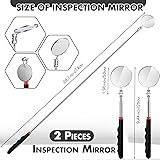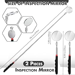 Package Includes: the purchase comes with 2 pieces of inspection mirrors, you can use for a long time, and can meet your daily using and changing demands, convenient to use depending on different situations Metal and Glass Materials: this mechanics mirror is carefully built from metal and glass materials, designed for durability in mind, these mechanic inspection mirrors can withstand frequent use without losing their functionality or skimping on performance, the black long handle adds a touch of modern atmosphere, making the mirrors aesthetically pleasing Adjustable Handle Size for Comfort: the handle of the telescoping mirror can be stretched from about 9.8 inches/ 25 cm to 29 inches/ 74 cm, this scalable design allows for easy adaptability to various distances while maintaining convenience and saving effort, useful when needing an extended reach Easy and Comfortable: the machine tool inspection mirrors come with the grooved cushioned handle, which are comfortable for you to hold the mirror to use, and you can adjust the handle depending on your viewing needs Convenient Features: this telescopic mirror is not just designed with adjustability and durability in mind, they also feature a 360 degree rotating capability, this means you can position the mirror into the direction according to your needs, the freedom of movement makes it convenient to use, whether in mechanical environment or home use, letting toolmakers, mechanics, inspectors and mechanics to access hard to reach areas