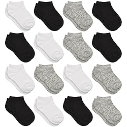 Socks for Toddler Kids: SPTRAMLE ankle socks are designed to fit kids of different ages (1-14 years old) and sizes, made of polyester and spandex blend fabric, which is soft and gentle on children's skin, helps wicks moisture away. Medium thickness makes these toddler socks suitable for all seasons 16 Pairs: Package includes 16 pairs of low-cut socks, makes it easier for your child to wear and replace their socks, and ensures they always have a clean pair ready to go. They are available in various sizes including 12-36 months toddlers, 4-7 years little kids, 6-8 years kids, 10-12 years big kids to suit your child’s growing needs High Stretchy: To offer more flexibility and comfort to kids, our low cut socks adopt upgraded high elastic fabric. Appropriate elastic make sure the sock will not impede blood circulation. The low cut design helps protect your babies’ ankle and not easy to slip off. Guaranteed to make kids have a good time in the outdoor activities, sports, as well as home Great Gift: These basic ankle socks make great gifts for boys and girls for birthdays, Christmas, children's days, or other holidays. You could choose it for your daughter, son, kids, friends as a birthday gift, white elephant gift, birthday gift, Christmas gift, Christmas stocking stuffer, Halloween gift Customer Care: There's nothing we love more than making our customers satisfied! If you receive the wrong size, please do not hesitate to contact us. We will provide you with the most satisfactory solution.
