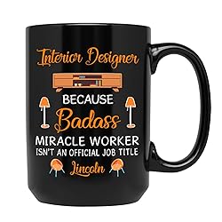 - Personalized Interior Designer Badass Mug, Interior Designer Miracle Worker Mug, Future Interior Designer Job Title Mug, Gift For Interior Designer, Designer Coffee Mug, Black Cup 11oz 15oz HIGH QUALITY CERAMIC MUG: All of our coffee mugs are made of professional grade ceramic, ensuring they are tested for durability and sharpness on each product. Microwave and dishwasher safe for your convenience. Design is printed on both sides of the mug so that both lefties and righties can enjoy it. Employing the latest in print technology create the designs are high quality and will not peel off or fade away. EASY TO USE: C-shaped handle & thick and clean cup wall, comfortable to hold. This perfect sized coffee mug is available in 11oz or 15oz sizes. This novelty ceramic coffee mug is a useful mug gift to coffee lovers or tea drinkers. Perfect for daily home use, travel or more at the office. MAKE A BEST MUG GIFT: This novelty black Interior Designer coffee mug is perfect mug gift for anyone on any occasion. This coffee mug make unique and novelty mug gift for Interior Designer, Grandpa, Grandma, Dad, Mom, Brother, Sister, Friends, Coworker, Wife, Husband or your loved ones. Perfectly suitable for many occasions including: Father’s Day, Mother’s Day, Christmas, Birthday, Retirement, Thanksgiving, Valentines, Thank You or any occasion. ☞ If you have any questions or concerns about the purchase, please do not hesitate to contact us.