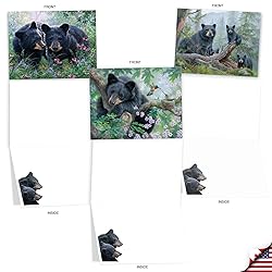 INSIDE GREETING: The inside is ungreeted, making this ideal for your customized thinking of you, miss you, just because notes, for any time and for all occasions! COVER - [images of black bears and cubs] SIZE - Bulk gift box set of 20 beautiful assorted blank All Occasions note cards & envelopes and measure 4" x 5", which is smaller than your regular standard card. USE: stationery for writing All Occasions wishes. Card's cover pages are printed on coated stock and have a high gloss finish, while the cards interior pages are uncoated for a smooth and flawless writing surface. Ideal for men and women, husbands and wives alike. SOCIALLY RESPONSIBLE - Keeping US jobs at home, our products are Made in the USA (and Canada) for almost 40 years. We use thick, white, glossy cardstock, w/ 30% recycled content (no papyrus, naturally).