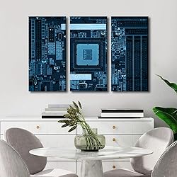 TUMOVO Technology Wall Decor CPU Poster Wall Decor Canvas Wall Art 3 Piece Modern GPU Computer Processors Art Prints Modern Decor Bedroom Living Room Stretched and Framed Ready to Hang (28" Wx42 H)