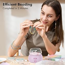 Quick & Efficient Beading: The electric bead spinner is designed to streamline your bead stringing process. With its powerful motor, it quickly and effortlessly spins beads, saving you valuable time and effort. Allow you to devote more energy to the creativity of projects.【 Beading Completed in 2 Minutes】 Two Power Supply Choice: 3 AA Battery Operated and USB-Type C Powered. Electric clay bead/seed bead spinner, battery-powered, purple design with refreshing and elegant, light and small, more convenient to use or take out, suitable for outdoor or group activity Multi-Function Compatibility: Upgrade technology keeps the beading bowl low noise and stable rotation, can adjust the speed from slow to fast and supports rotating 2 steering (left and right). Multi-function design gives you a better beading experience【Suitable for various types of beads】 Beginner Friendly: The seed bead spinner makes beading more accessible to people of all ages and abilities. Even those with limited dexterity or patience can enjoy this craft.【Please practice a few more times according to our instructional video, once you have mastered the technique of using the beading spinner, you will find great fun】 Endless Creative Possibilities: Beading has never been this easy! Whether you're an experienced jewelry maker, a DIY enthusiast, this bracelet spinner is a must-have tool. It can be used for making various projects, including necklaces, bracelets, earrings and more, great for your beading business. Purple design with beautiful packaging is refreshing and elegant, a great gift option