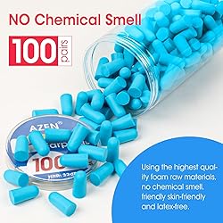 - AZEN 100 Pairs Ear Plugs Bulk, NRR 32dB Soft Foam Ear Plugs for Sleeping Noise Cancelling, Earplugs for Concerts Shooting Swimming Noise Reduction (Lake Blue)
