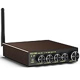 2 channel audio amplifier: Very simple and compact design, practical and powerful, this Hi-Fi Bluetooth wireless amplifier is designed for the customers specially who are in pursuit of perfect HiFi sound. CD Lossless and high resolution audio bluetooth amplifier: Qualcomm 5.1 buletooth QCC3034 core((24-bit 96kHz), support APTX,APTX-HD and APTX-LL,up to 50ft connection range guarantees very short signal delay. No pop or no audible noise when Bluetooth connected.The Black Immersion Gold Board is more effective in isolating noise from current disturbances.Sophisticated circuit design(blasting sound free, plug-in sparks free).Sophisticated ID design. Stereo audio amplifier: T200W Bluetooth stereo receiver amplifier applies 2PCS Texas Instruments TPA3116D2 chips. The TPA3116D2 is for stereo effect,and also can be the digital amplifier power stage for driving speakers, with advanced oscillator/PLL circuit employing a multiple switching frequency option to prevent from AM interferences. 100W RMS X 2(4 ohms, 20 Hz - 20 kHz, 0.04% THD), comes with a 24V power supply,which can drive 280watts(8 ohms), 320watts(4 ohms) speakers.(for passive speakers only, Not ok for the active speakers). Package contents: T200W home integrated digital amplifier x1, 24V/6A power supply x1, user manual x1, our worry-free 24-month warranty, and friendly customer service.e, up to 50ft connection range guarantees very short signal delay. No pop or no audible noise when Bluetooth connected.