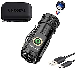 - UNROEVS Mini Flashlight 2550 Lumens Rechargeable USB C Charging, Small Flashlights High Lumens 5 Modes, Pocket Flashlight with Clip, Magnetic Flashlight for EDC,Camping, Hiking,Emergency