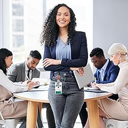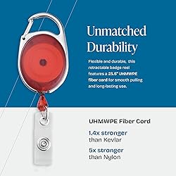 Double the Power. Our ID badge holder with clip holds up to 3.5oz or 7 keys compared to the usual 2oz or 4 keys. It comes with key rings and doubles as a retractable keychains to keep your keys handy. Unbreakable Cord. Forget annoying lanyard breaks, the 23.6" UHMWPE fiber cord reel makes our heavy duty badge reel more flexible and stronger than steel wire. Unlocking doors has never been this easy. Solid Badge Clip: Clip on and conquer. This secure, screw-fastened design keeps your badge and name tags accessible on any clothing or accessory. From pockets to backpacks, this badge reel can handle it. Badge Holders with Clip and Keyring - Vertical Clear Plastic 2.52" x 3.58" Sleeves Fit Up to 3 Cards - Retractable 24" UHMWPE Fiber Pull Cords for Easy Access - 2-Pack, Black Reels