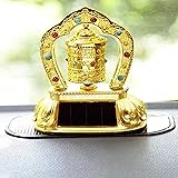 - Product Description Features: - Luxurious and exquisite, extremely enhance the look of your car interior. - Solar energy powered, the middle prayer wheel will keep running as long as there is sunshine. - Buddhist prayer wheel design, for the best wishes of safety. - Adopt electroplating process, lustrous and no fading. - It can be widely used in car, home, office interior decoration, also a good gift for friends.