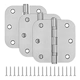 3 Pack Stainless Steel 3.5 x 3.5 Inch Silver Ball Bearing Door Hinges with 5/8 Radius Corners, 3 1/2 Inch Rounded Interior Door Hinges for Bathroom, Bedroom, Living Room