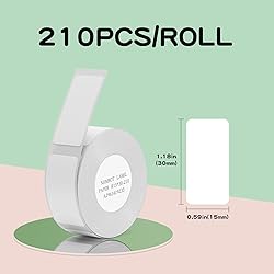 - D11/D110/D101 Label Tape, Make Your Life More Organized and Tidy Feature: Adhesive labels Removable without glue and stains. Scratch-resistant High-quality label paper, no need to worry about scratch taking away the contents. Waterproof Don't worry about the water make the writing disappear. Specifications: Material: Thermal Paper Diameter: 0.59" x 1.18" inch Item Weight: 0.6oz Packaging Quantity: 6 Rolls 15*30mm Label Tapes Package Size: 3.93*1.96*0.47IN Package Weight: 1.76oz Storage life: Temperature 23℃±5℃,relative humidity 50±5% for 24 months. (please use it soon after unsealing) D11/D110/D101 labels are applicable in: Print name labels for children Classify home and office supplies Mark the type and amount of medicine Make selling tags for supermarkets Differentiate usage of cables Print study and cosmetics items Create tags for stores and bakery Record shelf life for medicine