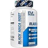 Evlution Nutrition Black Maca Root - Energy Support - 500mg Organic Black Maca Root Powder - Workout Supplement - Vegetarian Capsules - for Strength Performance & Stamina - 60 Servings