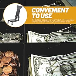 - Description The cash register bill clip is made from plastic, strong and solid, wear resistant and sturdy to use. The plastic clip is designed for keep the cash or money in place, which can press bills firmly, easy to and convenient to use, a nice accessory for cash register drawer. Features -Color:Black -Material:Plastic -Size:11.00X6.00X3.00cm/4.32X2.36X1.18in - Money clips for cash, portable and universal design, fit various cash registers for small business. - Clip style design for quick and easy use, these money clips are easy to install and saving time. - Cash register clip is multi-functional and versatile, can be used for stores, shops, and businesses. - Practical money clips for cash are made of plastic material, sturdy to serve you for a longer time, giving you nice use experience. - Reasonable design, can press bills firmly, perfectly for clipping cash, and other types of currency. Package Including 6 x clips