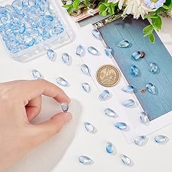 OLYCRAFT 100pcs Teardrop Cornflower Blue Glass Beads with Glitter for DIY Crafts