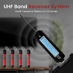 UHF BAND RECEIVER SYSTEM: The portable wireless microphone offers crystal clear and superb sound reproduction and has an UHF signal audio transmission for an unrivaled performance. 4 CHANNEL DESIGN: The portable wireless microphone system has a 4 channel construction that provides a wide response range and low distortion sound reproduction. Additionally, the device provides an independent channel adjustable controls HIGH SIGNAL NOISE RATIO PERFORMANCE: The wireless microphones also ensure a high signal and noise ratio performance equipped with RF signal LCD indicator. The universal also has quad antennas for easier sound and signal manipulation. WHAT’S IN THE BOX: The package includes (4)Wireless Mic, (8)'AA' Battery, (1)USB-Micro USB Charging Cable, (4)Plastic Mic Anti-Drop Rubber Ring, (4)Mic Sponge, (1)Mic Receiver, (1)3.5mm Jack Audio Input Connector, (1)18650mA Battery, (1)Plastic Case LONG BATTERY LIFE: The wireless microphone provides you with up to 4 to 8 hours of battery life of the transmitter with 16 channels with the 1.5V, "AA" Battery, providing you more service life. Also features 1 XLR connector jack for one receiver