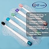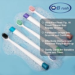 Unparalleled Softness and Durability - Experience a brushing sensation like no other with the B rush Flossing Toothbrush. Our revolutionary Microfine Technology employs a dual-layer bristle design for a one-of-a-kind blend of softness and stability. The extended, single-end tapered bristles expertly navigate hard-to-reach areas that conventional brushes can't touch, while the compact end-rounded bristles provide essential support for optimizing plaque removal. Built to Last - Enhanced Durability. B rush Flossing Toothbrush bristles have an innate ability to absorb minimal water, ensuring a prolonged brush life by maintaining their shape longer than standard nylon bristles. Their remarkable resistance to the effects of both chemical agents and natural mouth fluids ensures that your toothbrush maintains peak performance, surpassing the lifespan of average toothbrushes. SENSITIVE TEETH AND GUMS - Gentle yet effective, our soft bristles are perfect for sensitive teeth and gums. Enjoy prolonged usage with longer-lasting bristles, maintaining your brush for up to 3.5~4 months Endorsed by Dental Professionals Dental Professionals Approve - B rush Microfine Technology has undergone rigorous evaluation by dental experts, consistently proving its unmatched effectiveness. The consensus among dental professionals who have tested the B rush toothbrushes is resounding – it's not just another toothbrush, but an epitome of excellence in oral care. The remarkable results achieved with B rush speak volumes for its unrivaled performance. 5-Pack Wide Head Size: Family Oral Care Solution.The flossing B rush toothbrush boasts a wider brush head, making it great choice for daily use by adults. Our value-packed 5-brush set ensures that each family member can enjoy the premium B rush brushing experience. For those frequently on the go, consider designating a few brushes as travel companions.