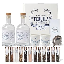 Personalized Tequila Every Time - Make your tequila just the way you like it. Whether you aspire for smokey Scotch, classic Irish or the great American Bourbon, use your creativity with our tequila kit wood chip blends and botanicals for refined taste Tequila Craft Made Easy - Add 350 mL of alcohol and half a test tube of your favorite wood chips into the tequila bottle. Filter out the wood chips after 2 - 4 weeks and add botanicals to the alcohol base. Strain out after 1 day and give 1 day to cool and enjoy (No Alcohol Included) Complete Tequila Kit - Tequila Set Gifts for Men features a complete kit including 2 elegant tequila bottles, 3 woodchip blends, 9 exciting botanical flavors, 1 filter funnel, 2 labels that you can sign and preserve your batch, 2 white ceramic shot glass and an instruction booklet with tequila-inspired trivia, recipes. Note: Bottles come empty! Versatile Experience - Elevate your tequila experience now—grab our infusion kit, infuse with wood chip blends and botanicals, pour, follow easy recipes, and savor the taste of your unique homemade mixology creation! Perfect Gifts for Men - Surprise your loved one with this exciting white label Tequila gifts for men for his Birthday, tequila kits for women, Christmas or Anniversary. Personalized gift to display your affection and care to that special one. An ideal fathers day gift