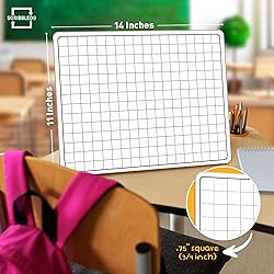 - Elevate the educational experience with our 11x14 inch dry erase double-sided graph board, specially designed to enhance learning dynamics in the classroom. The small square boxes measure ¾ inch, which gives you lots of drawing space. This versatile tool boasts a graphed dry erase grid print on one side, providing educators with a powerful visual aid for teaching various subjects. The printed grid whiteboard facilitates mathematical explanations, scientific demonstrations, and even collaborative problem-solving, enabling students to engage more effectively with complex concepts. On the flip side, the blank writing surface becomes a canvas for student participation and creativity. Whether it's brainstorming sessions, group projects, or individual problem-solving, this side of the board encourages active involvement and critical thinking. Students can express their thoughts, illustrate ideas, and work through challenges visually, promoting a dynamic learning environment that caters to different learning styles. The compact 11x14 inch size graph whiteboard is perfect for classrooms, ensuring that every student has a clear view of the board and can actively participate in discussions. Its durable construction stands up to the rigors of daily use, making it a reliable investment for educators aiming to enrich their teaching methods. From illustrating mathematical equations to diagramming scientific processes, this double-sided board fosters interactive and engaging lessons that leave a lasting impact on students' academic journeys. The large grid white board is a great alternative to the graph paper notebook, grid paper, grid notebook and drawing pad. It will save you lots of wasted paper while helping save the environment. The dry erase graph board is a great addition to the math teacher supplies list.