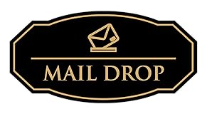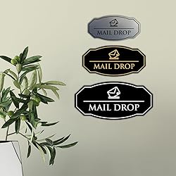 - Our Signs ByLITA Victorian Mail Drop Durable ABS Plastic | Laser Engraved | Easy Installation | Elegant Design Sign can be attached to the door, wall or window of your home or business. The sign text and design work is laser engraved into sturdy plastic. Each sign comes with an adhesive foam backing, allowing them to be attached to any flat surface. Comes in multiple colors. Our mail signs are great for your business or home. Small sign is 3"H X 6" W