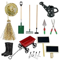 - A set of miniature dollhouse garden furniture set, ideal for the dolls house, for crafts, decorating or even as a gift for friends. Features: 1.Dollhouse garden accessories, such as spade, trolley, kettle, rain boots, broom, mini blackboard, straw hat etc. 2.Perfect for mini garden DIY, can be used in miniature dolls house, garden decoration. 3.A set of miniature garden ornaments is good for decorating the house and fairy gardens. 4.Dollhouse Garden Accessories are ideal as a nice gift for friends and family. Package includes: 16 x Miniature garden tools Note: 1.Please confirm the size before buying, it is different from the usual size.
