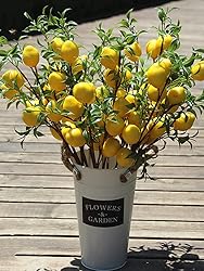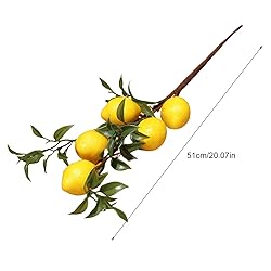 MATERIAL: Foam+Iron+Plastic .fake lemon branches can be used in a wide variety of settings and occasions. They can be used in floral arrangements, wreaths, centerpieces, garlands, and other types of decor EASY TO CARE: The artificial lemon branch , the color is vivid, elegant and attractive, artificial plants are very easy to care, do not need to be watered, never fade. Enjoy beautiful plants . Suitable Size: each artificial lemon decor measures about 50 cm/ 20 inches in branches, long enough for various types of vases, and you can also cut it into different sizes as you like, which will provide you with convenience of decoration Perfect as Gift: Our artificial lemon branches have bright colors, cute appearance, and exquisite craftsmanship, making them suitable as housewarming gifts for family and friends, adding a touch of color to their homes. Wide Application: Suitable for vase, home, kitchen, party decorations. festival item, children’s party decoration, Christmas’s gift, Halloween gift, festival item, early childhood education etc. More new functions are waiting for u to find out.