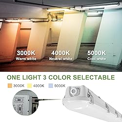 - 4FT LED Vapor Tight Lights, 40W-50W-60W Selectable, 3000K-4000K-5000K Tunable, IP66 Waterproof LED Shop Light for t for Car Wash, Garage, Walk-in Freezer, 100-277V ETL Listed