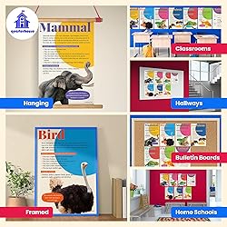 7 CLASSROOM POSTERS: 1) Mammals, 2) Birds, 3) Amphibians, 4) Invertebrates, 5) Reptiles, 6) Fish, and 7) Biological Kingdom Classification. The ideal Science classroom decorations for teachers. TEACHING POSTERS FOR CLASSROOMS: Each poster is 12 x 18 inches; printed on high-grade, cover-weight satin paper for added protection; made to withstand the rigors of K-12 classrooms LOVED BY STUDENTS: We design our Animal Taxonomy posters to inspire and educate, giving students the tools they need for increased performance; beautiful classrooms make better students DESIGNED FOR TEACHERS: The perfect Animal Groups classroom décor for Science teachers who want to reinforce certain Vertebrates and Invertebrates themes in their classrooms MADE IN AMERICA: We design and manufacture our learning resources right here in the USA; posters ship in heavy duty kraft tubes for maximum protection; durability guaranteed