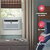 Customizable Cooling: Achieve optimal comfort with custom temperature settings, 6-way directional airflow, and three different fan speeds Easy Maintenance: Effortlessly adjust settings with the remote control and keep your AC unit working efficiently with Clean Filter alerts that notify you when it's time to clean the washable dust filter Energy-Efficient Performance: Save energy with Eco Mode while maintaining a comfortable temperature and reduce energy consumption with Sleep Mode, which gradually increases the temperature overnight Consistent Comfort: This window air conditioner operates at just 54 dBA, providing quiet cooling that makes it ideal for bedrooms or small living rooms up to 350 sq. ft. Effortless Convenience: Set the 24-hour on/off timer to match your schedule and enable Dry Mode to remove excess moisture from the air, creating a more comfortable environment