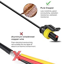 PA66 nylon: made of PA66 nylon, this material has the advantages of flame retardant, high temperature resistance, high toughness, wear resistance, wear resistance. Working temperature :-40℃ to +120℃ Pure copper: the core and terminal are composed of pure copper and phosphorous copper, with high electrical conductivity Compatible: motorcycles, scooters, cars, trucks, quads, tricycles, caravans, boats, jet skis, boats Package includes: 10 sets of 1 pin connector with cable, each set includes :1 x 1 male connector with 3.2 inch cable; 1 x 1 female connector with 3.2 inch cable