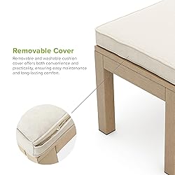 REMOVABLE & WASHABLE - Elegantly designed outdoor metal dining bench with a wood-textured sturdy aluminum metal frame, this metal garden bench has a blending style and durability for outdoor comfort.able seat cover STYLE - Elegantly modern, our patio bench with cushion boasts minimalist lines, seamlessly blending into outdoor settings. Clean outdoor backless bench design for serene relaxation and conversations. ALL WEATHER - This outdoor metal bench has materials that can withstand exposure to the elements. With both water and UV resistant frame, which provides excellent support and stability for years. COMFORT - Indulge in pure comfort with our metal outdoor bench with poly spun fabric cushion that you can sink in and relax amidst nature's beauty with unmatched relaxation and support. MAINTENANCE - Enjoy comfort and convenience with our outdoor metal bench featuring removable/washable cushion covers. Relax in style, worry-free maintenance of your outside bench. WHAT'S IN THE BOX - One (1) textured wood outdoor bench