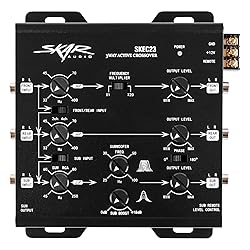- Skar Audio introduces our SKEC23 3-way electronic crossover, a cutting-edge solution that brings precision and control to your car audio system like never before. This 6-channel (3 RCA inputs, 3 RCA outputs) electronic crossover is designed to elevate your listening experience, offering a wide range of features for optimal sound customization. The inputs for front, rear, and subwoofer channels ensure seamless integration with your existing setup, while the high-pass control for front and rear outputs guarantees crystal-clear sound for your speakers. The non-fade low-pass output and adjustable low-pass gain allow you to achieve deep bass, and the built-in subwoofer bass boost feature further enhances the low-frequency response, giving your music depth and punch. This electronic crossover provides unmatched control and also ensures seamless and reliable performance. Featuring a 5-Volt RCA Output rating, this crossover proves highly beneficial when your source unit possesses a lower output voltage. The gold-plated RCA input and output connectors helps to guarantee optimal signal transfer, reducing the risk of signal degradation. For added convenience, a remote subwoofer level control is included, enabling you to make real-time adjustments to the subwoofer output without leaving your seat. This 3-way electronic crossover is a must-have addition to your car audio system.