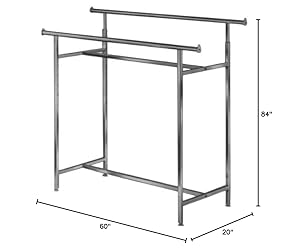 - Heavy duty design - Our Tandem Clothing Double Rack is built with superior strength, capable of holding up many garments at a time, allowing you to store multiple items without worry. Height adjusts from 48" to 81". - Ideal size for all - This 60" long and 20" wide double rack provides the perfect space for everything from bridal gowns and long dresses to shirts, pants, and more. Arrange them however you choose and make the most out of your storage space! - Built to last - Made of commercial grade steel with a sleek black finish that looks great in any room or closet. With our heavy duty construction and adjustable height you can trust your clothes will remain safe on this rack for years to come!
