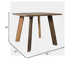- Discover the allure of the Reclamation Solid Wood Square Counter Height Dining Table. Crafted from enduring reclaimed timber, its 42-inch square surface fosters intimate connections. The table's natural brown hue, left unfinished, emanates raw authenticity, while the reclaimed, distressed wood tells a story of character and history. Standing at 36 inches in height, it redefines dining, merging elegance with a modern edge. Engage in conversations that flow effortlessly around this centerpiece, a harmonious blend of sustainable craftsmanship and rustic charm. Elevate your dining space with a table that embraces both timeless design and the beauty of reclaimed materials.