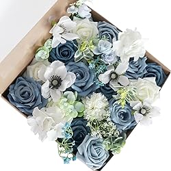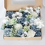 MOJUN Haze Blue Silk Roses Artificial Flowers Combo Box Set for DIY Wedding Bouquets Baby Shower Party Home Table Centerpiece Floral Arrangement Decor